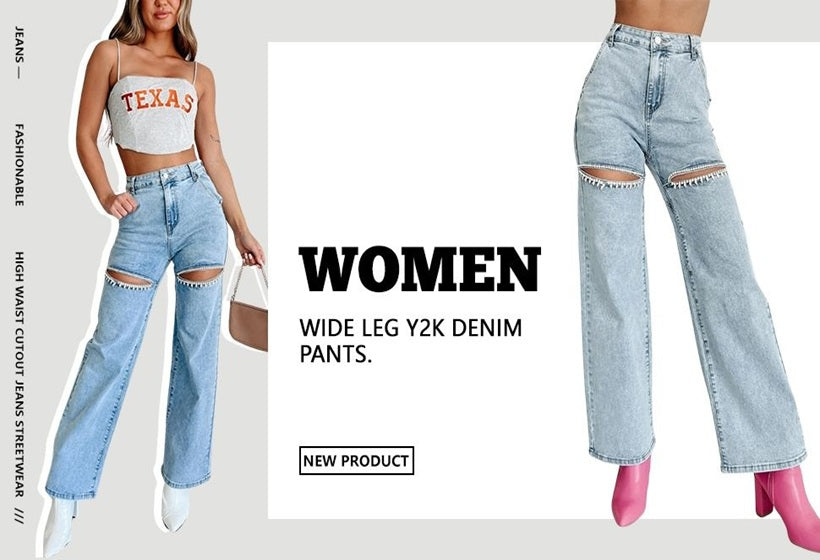 Men's Baggy Jeans Y2K Ripped Wide Leg Distressed Denim Pants Hip Hop Streetwear